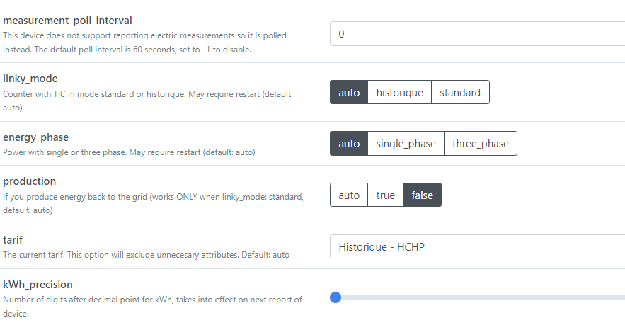 Je pensais que les infos du Zlinky_TIC étaient accessibles de z2m lors d’interrogations (paramètre measurement_poll_interval) ; alors que c’est le Zlinky_TIC qui transmets ces infos de sa propre initiative à z2m.