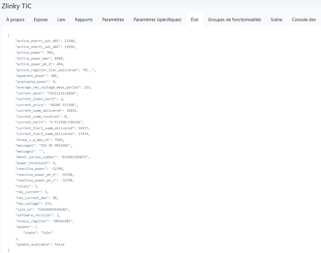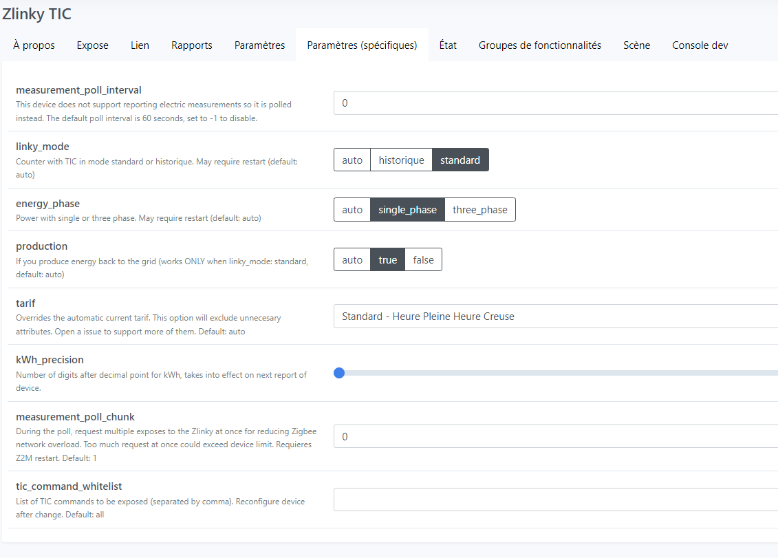 J’avais une config jeedom et zigbee2mqtt par défaut ; j’historise BBRHCJB (l’index), PAPP (la puissance apparente) et URMS1 (la tension)