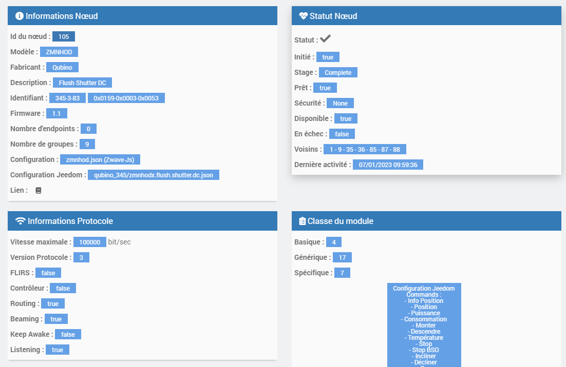 Je viens de faire une exclusion/inclusion, le module est bien la, la config aussi. la calibration a fonctionnée mais les boutons monter/descendre ne fonctionne pas du tout.