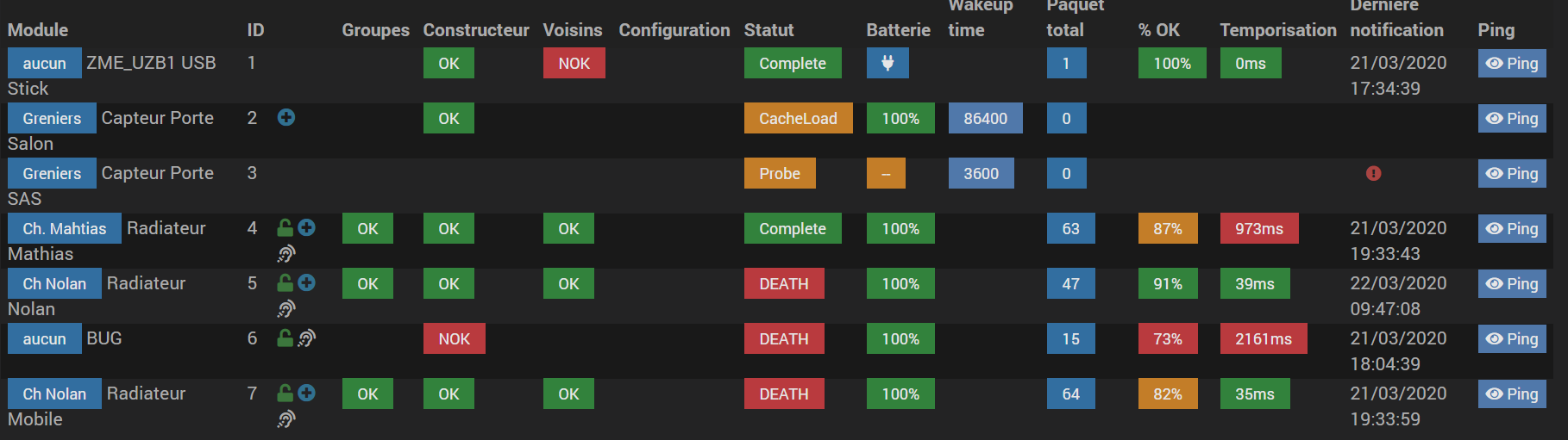 La ils sont bien capté, mais je perds mes capteurs de porte