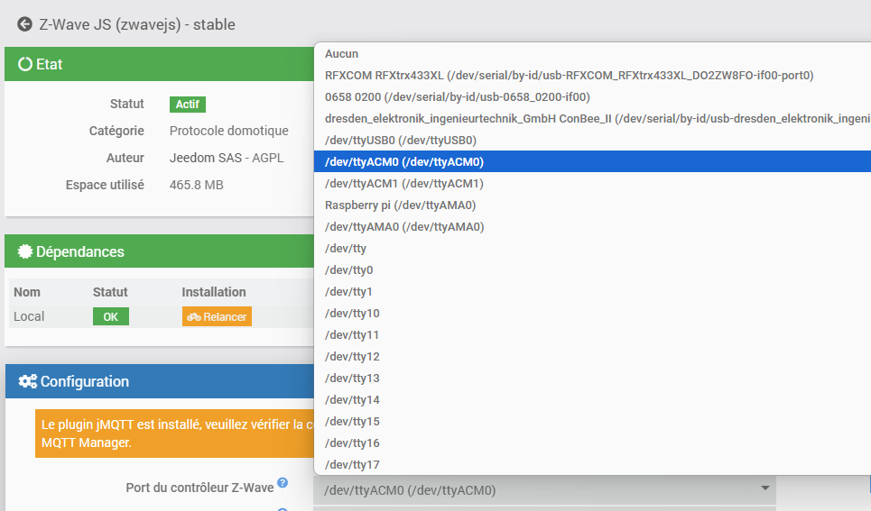 1-pour la configuration de zwavejs, définir le port du controleur en /dev/serial/by-id/