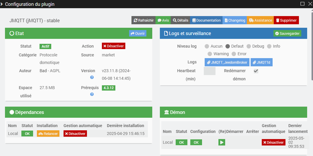 Je galère depuis des heures sur zwave qui ne répond plus depuis une restauration. Il y a des messages d’erreur de MQTT mais je ne m’en sors pas. Quelqu’un pourrait m’aider ? Voici des print screens du système, de la santé, des plugins et leurs logs: