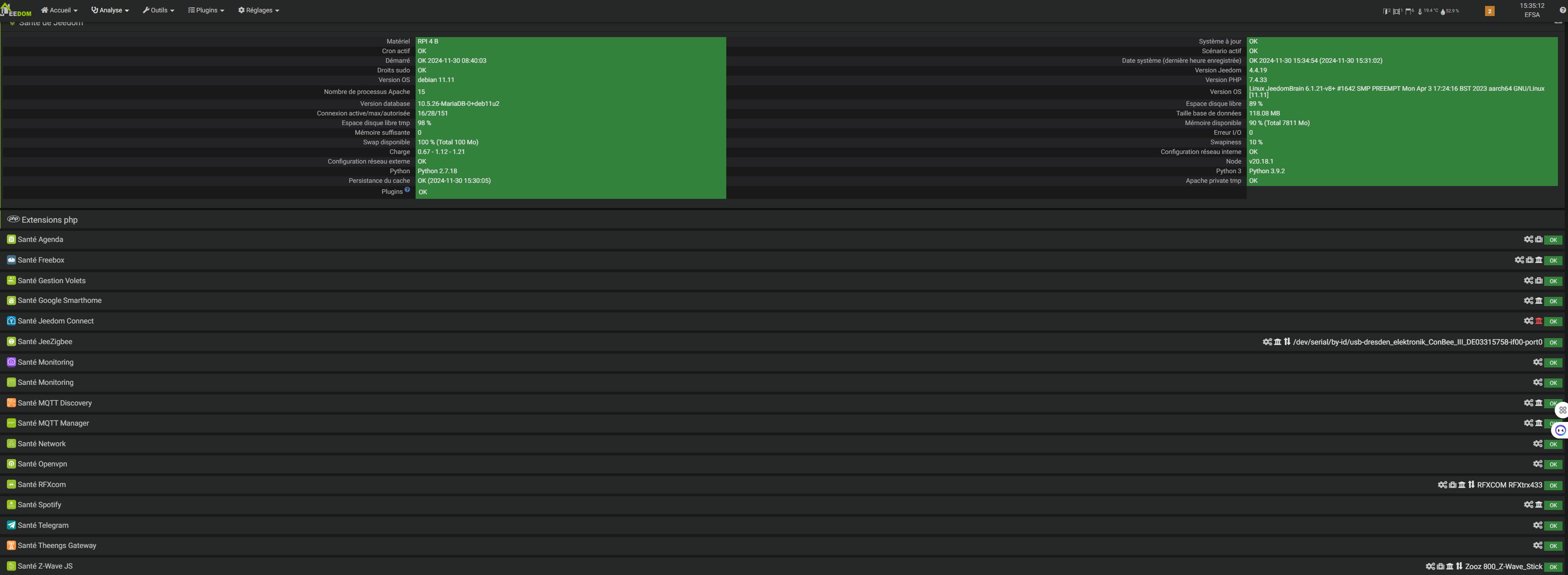 Quand je regarde le plugin le daemon est OK, pas de message d’erreur dans la console santé.